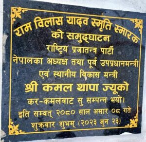 राष्ट्रिय प्रजातन्त्र पार्टी नेपालका अध्यक्ष कमल थापाले महोत्तरीको एकडारा गाउँपालिका स्थित रावि चौकमा पुर्व उपभामुख तथा मन्त्री स्व.रामविलास यादवको शालिक अनावरण गरेका छन् ।राप्रपा नेपालका सहायक महामन्त्री शशिरंजन यादवको सभापतित्वमा आयोजित एक समारोहको बिच प्रमुख अतिथि थापाले स्व.यादवको शालिक अनावरण गरिएको हो।